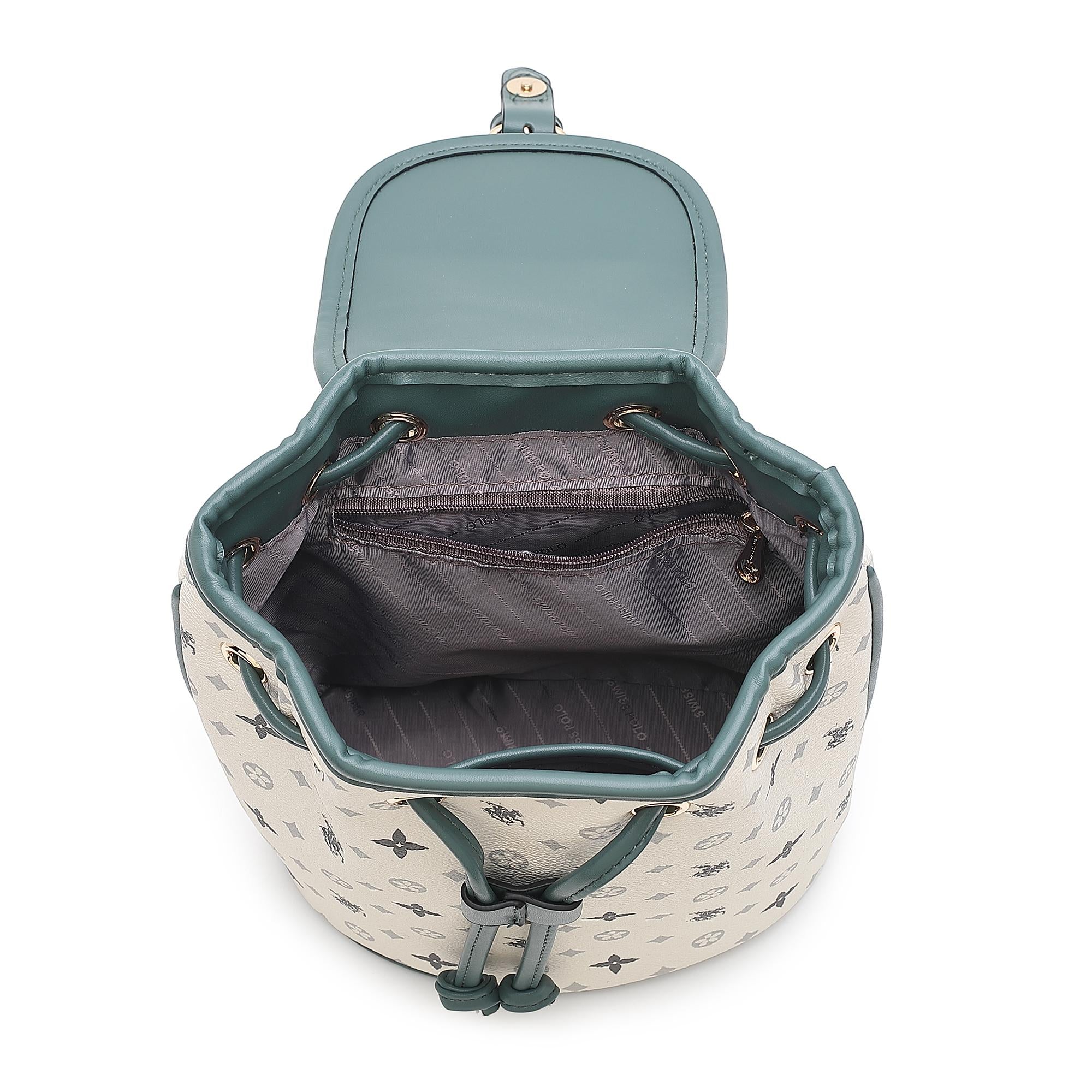 - Main compartment with magnet button and drawstring fastening