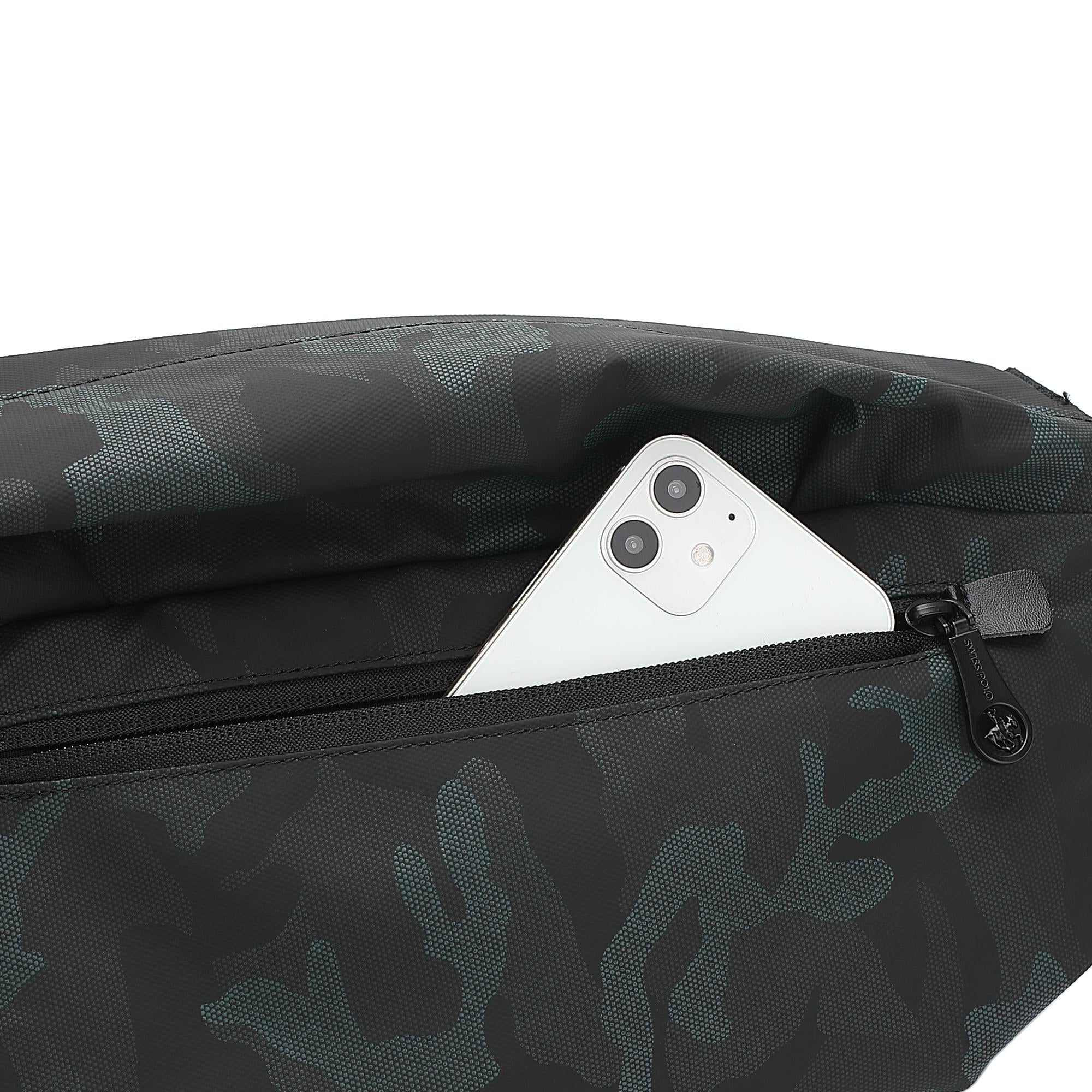 - 1 Front zip pocket with magnet button fastening