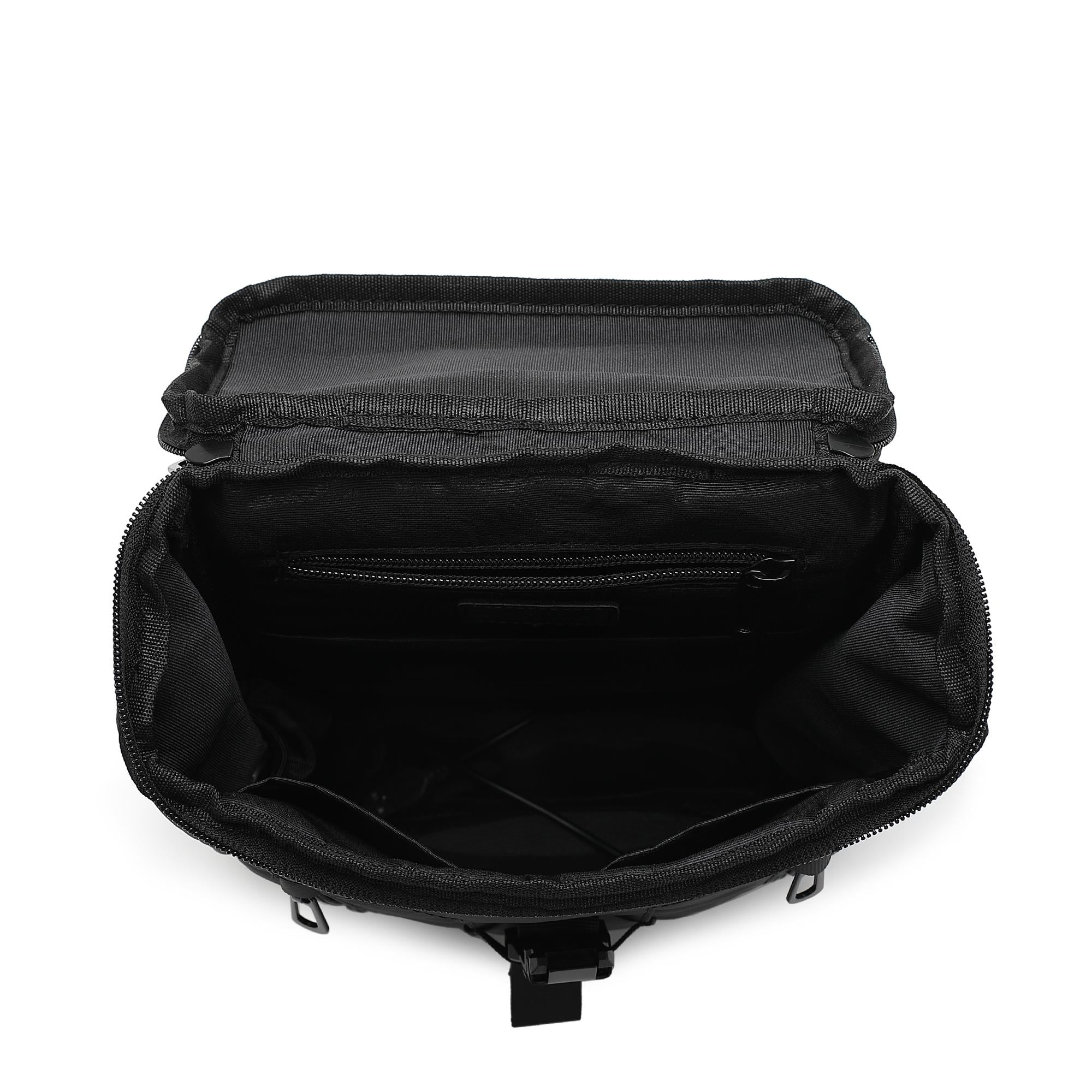- Main compartment with zip and magnet button fastening