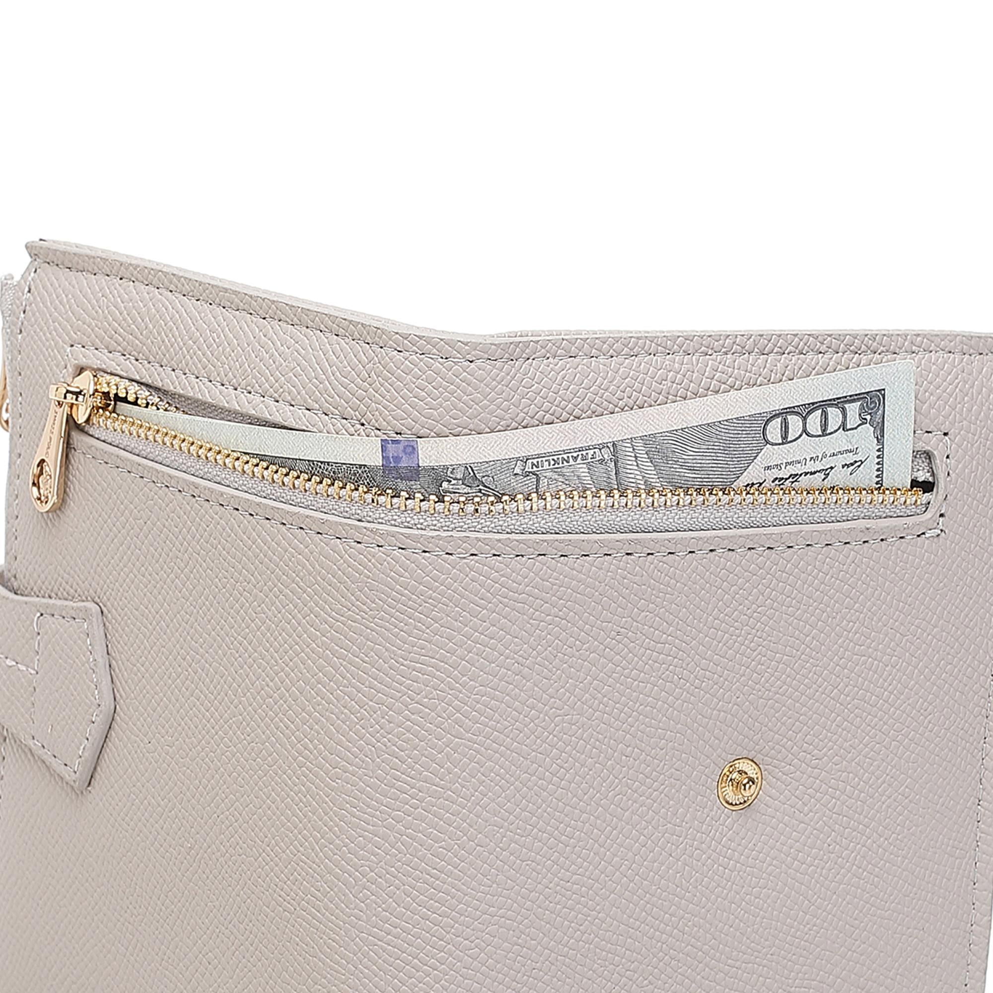 - 1 Side zip pocket with pin button fastening