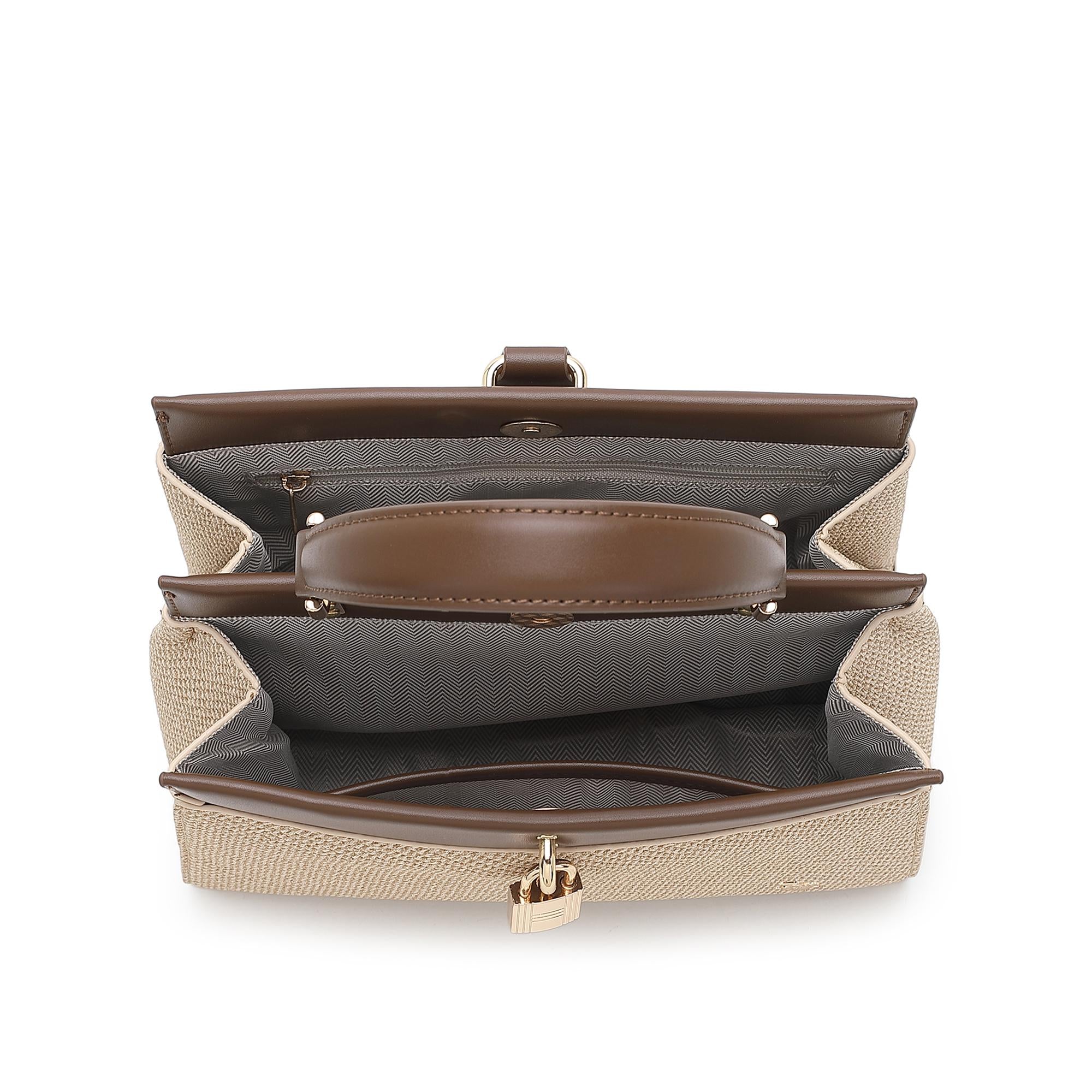 - 2 main compartments with magnet button fastening