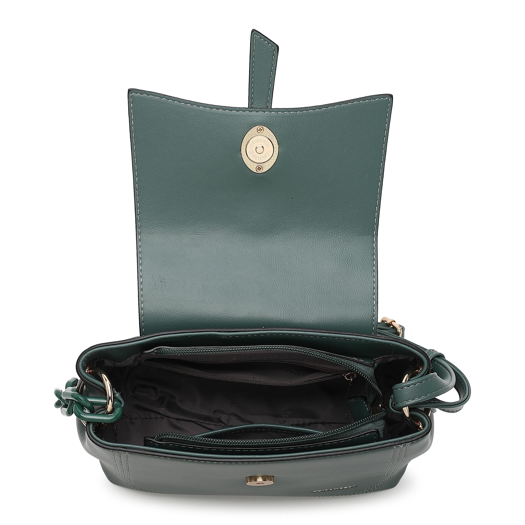 - Main compartment with magnet button and zip fastening