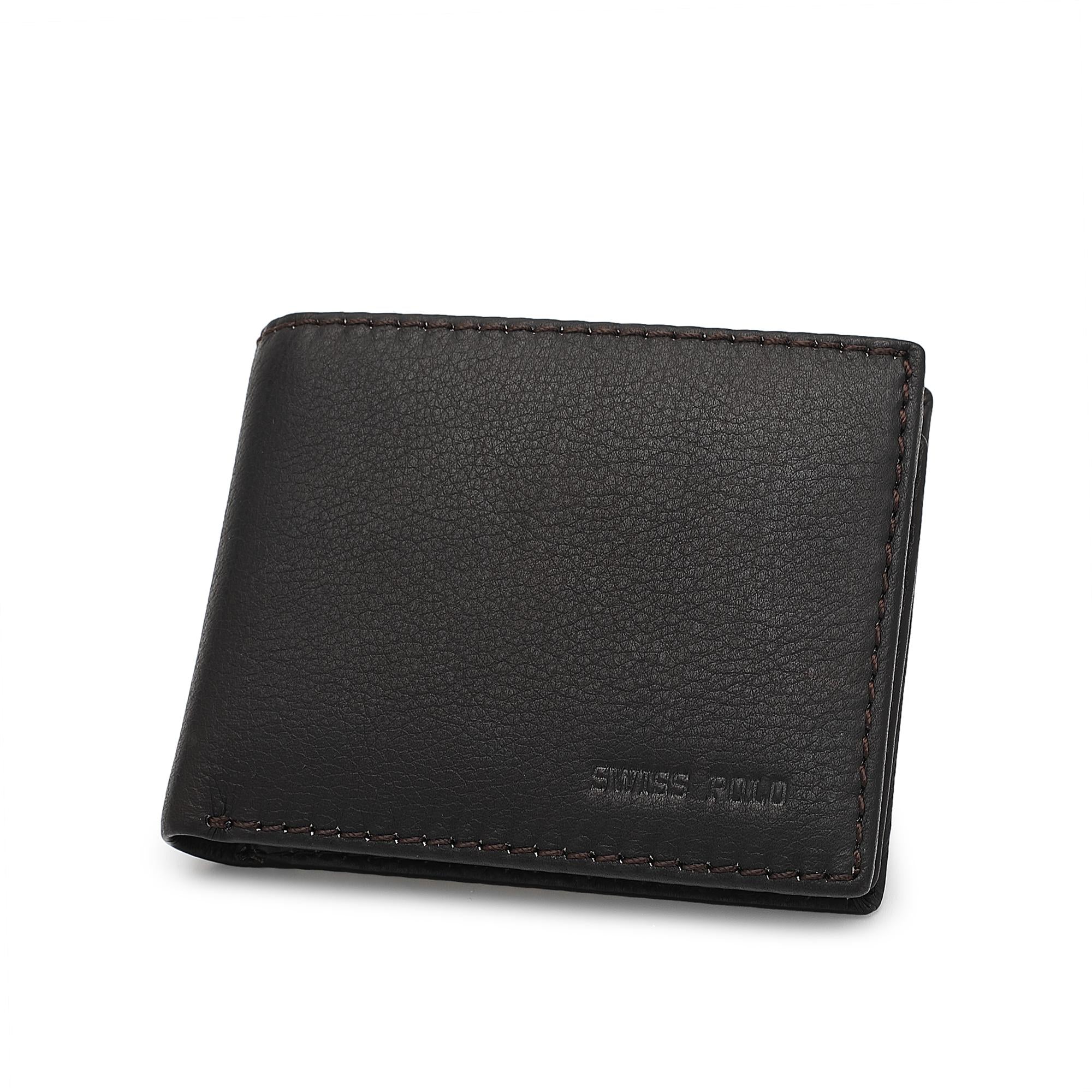 - Solid tone leather bifold wallet